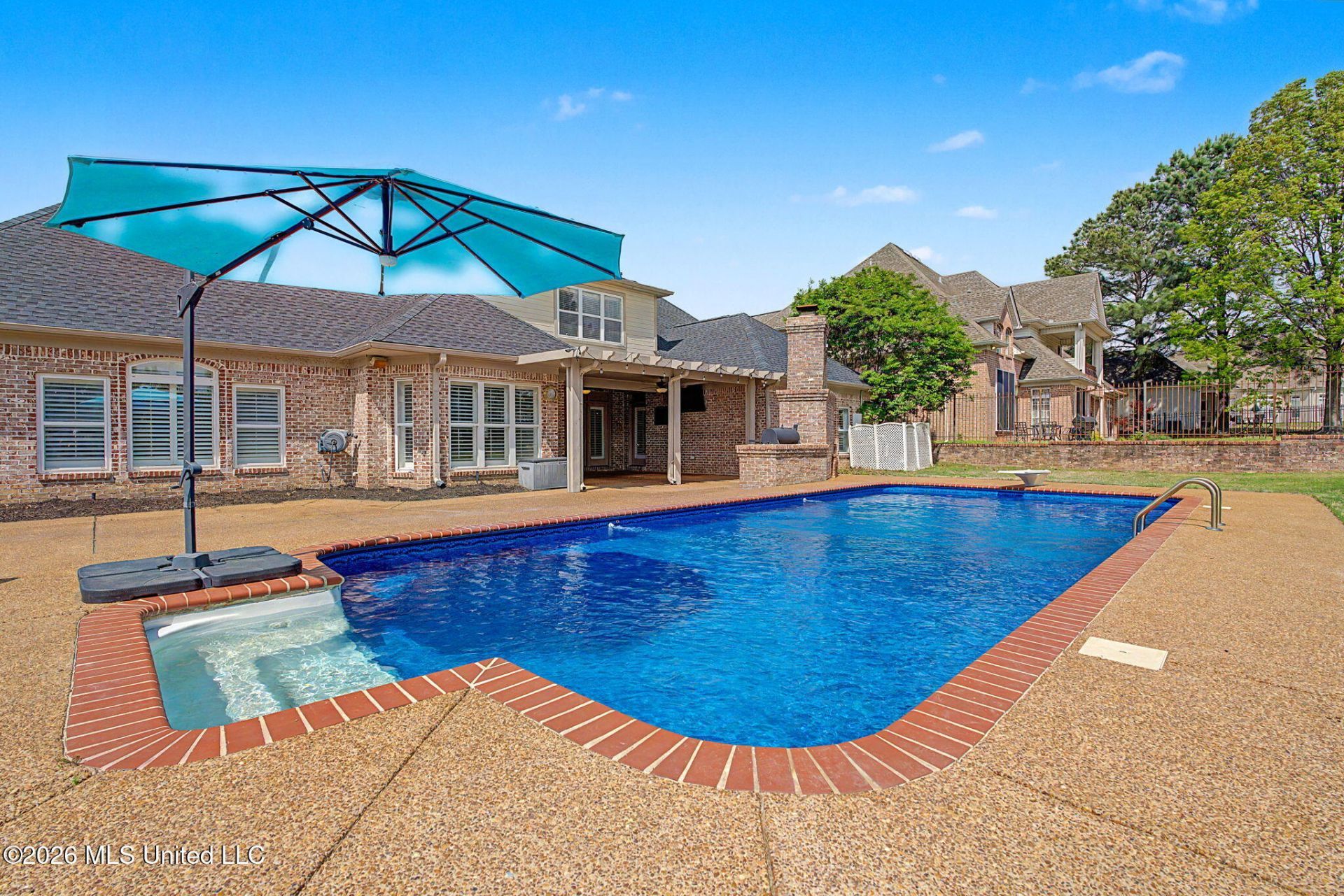 Golf Course Lot ¢ In-Ground Pool ¢ 2 Suites on Main Level ¢ 3-Car Garage ¢ Nail-Down Wood Floors ~~~~~Welcome to 6394 Shenandoah Lane, Olive Branch, MS . . . Positioned on a golf course lot in Cherokee Ridge, this beautifully built 4,455 square foot home offers 5 bedrooms, 4.5 baths, a bonus room, circular drive, and a 3-car garage. With two full suites on the main level, a thoughtful floor plan, and a setting designed for both everyday comfort and entertaining, this home brings together space, function, and timeless appeal. ~~~From the moment you enter, the quality of construction and finish work stands out. A dramatic 2-story foyer with double-door entry and wood-and-wrought-iron staircase sets the tone, while nail-down wood floors extend through the foyer, formal dining room, formal living room, stairs, hallway, and both downstairs bedrooms. Plantation shutters, heavy crown molding, rich millwork, and custom details throughout add warmth and architectural character.~~~The main living spaces were designed to feel both elegant and inviting. Formal dining and formal living rooms offer beautiful gathering spaces, while the spacious hearth room opens to the kitchen and features built-in shelving, fireplace, and views across the back of the home. With three fireplaces total -- in the living room, hearth room, and outdoor living area -- this home offers a rare level of comfort and atmosphere both inside and out.~~~At the heart of the home is a large open kitchen with granite countertops, center island, breakfast bar, double ovens, 5-burner gas cooktop, microwave, stainless GE Profile appliances, pantry, and an abundance of glazed cabinetry with decorative trim detail. The breakfast nook is filled with natural light and overlooks the backyard and pool, creating a seamless connection between indoor living and outdoor entertaining.~~~The primary suite is generously sized and privately positioned, offering a luxurious bath with beautiful tile work, marble countertops, double vanity, makeup vanity, built-in storage, jetted tub, and an oversized walk-through shower. The main level also includes a second full suite, offering flexibility for guests or multi-generational living.~~~Upstairs, you'll find 3 additional bedrooms, 2 baths (including a Jack-n-Jill), a bonus room, and excellent storage, along with a second stairway for added charm and convenience. Attic storage and built-ins throughout the home further enhance its functionality.~~~The outdoor living is a standout feature of the property. A covered patio with ceiling fans opens to a spacious pool deck, in-ground pool with diving board, and golf course beyond. The brick outdoor fireplace and built-in grill create a true backyard entertaining space, while wrought iron and brick fencing along the back and sides add both definition and style.~~~Additional features include a spacious laundry room with storage, speaker system throughout the home and on the patio, irrigation system, hardwired landsca